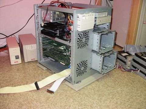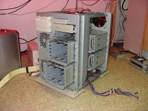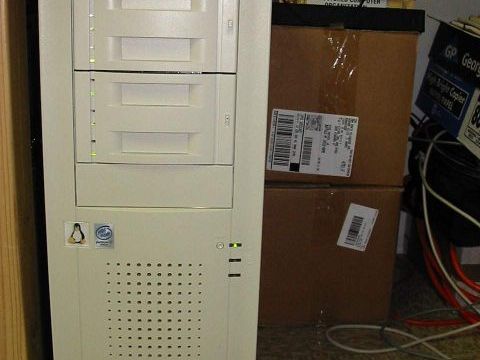 this beauty is one of my favorite machines, and has ran reliable since the very first day i installed Debian GNU/Linux. it has been given numerous hard drive upgrades over the years, and currently houses my primary Raid5 storage arrays, md0 and md1. their current combined storage space is just under 2 terabytes, thats a lot of jpeg data!