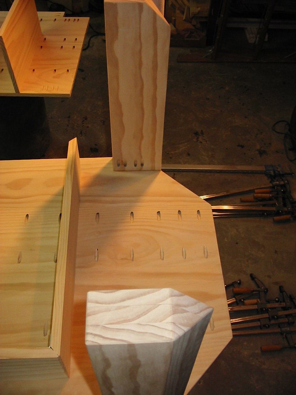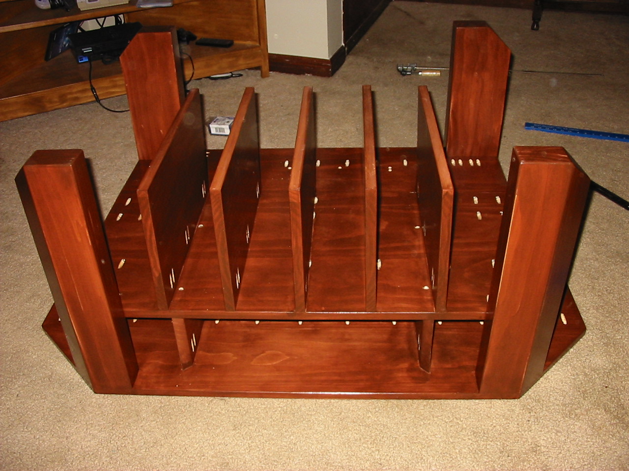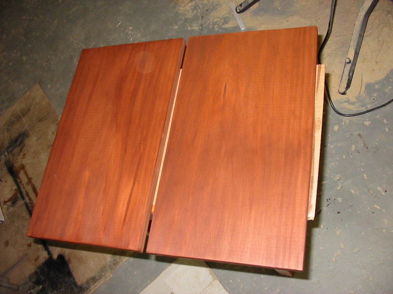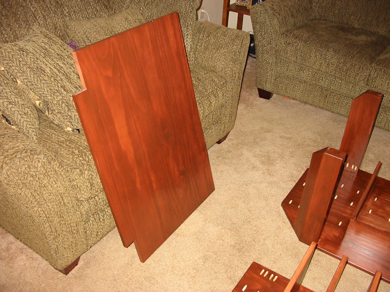 The 45 Collection - Coffee Table this is the second piece from my original furniture collection, entitled 'The 45 Collection' this fine woodworking project was executed to perfection, from sketch to sticks to finishing this piece really came together fast! the design is intended consume a lot of space, providing a large useable surface, and maximum storage and display features. of course some might argue, "fine woodworking?" but pocket holes can join wood in the time you can imagine a challenge. i may soon reach the ceiling of pockethole design, but i will wip up a bunch of Good Stuff getting there! of special note is the Ultra tough waterbased finish, it has stood to more than i would have ever thought: ball point pens and pencils on sigle sheets of paper is NO PROBLEM, hot pans, dog claws, and cats can do their worst! wet, sand, prestain, sand, prestain, sand, stain, sand, stain, sand, poly, sand, poly, steelwool, poly, steelwool, tack. Woa, glad thats over!