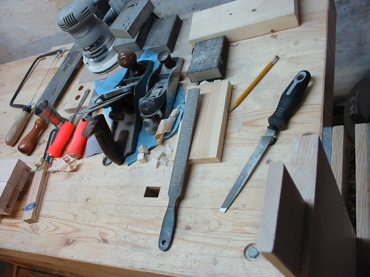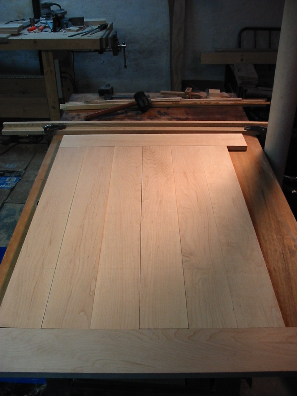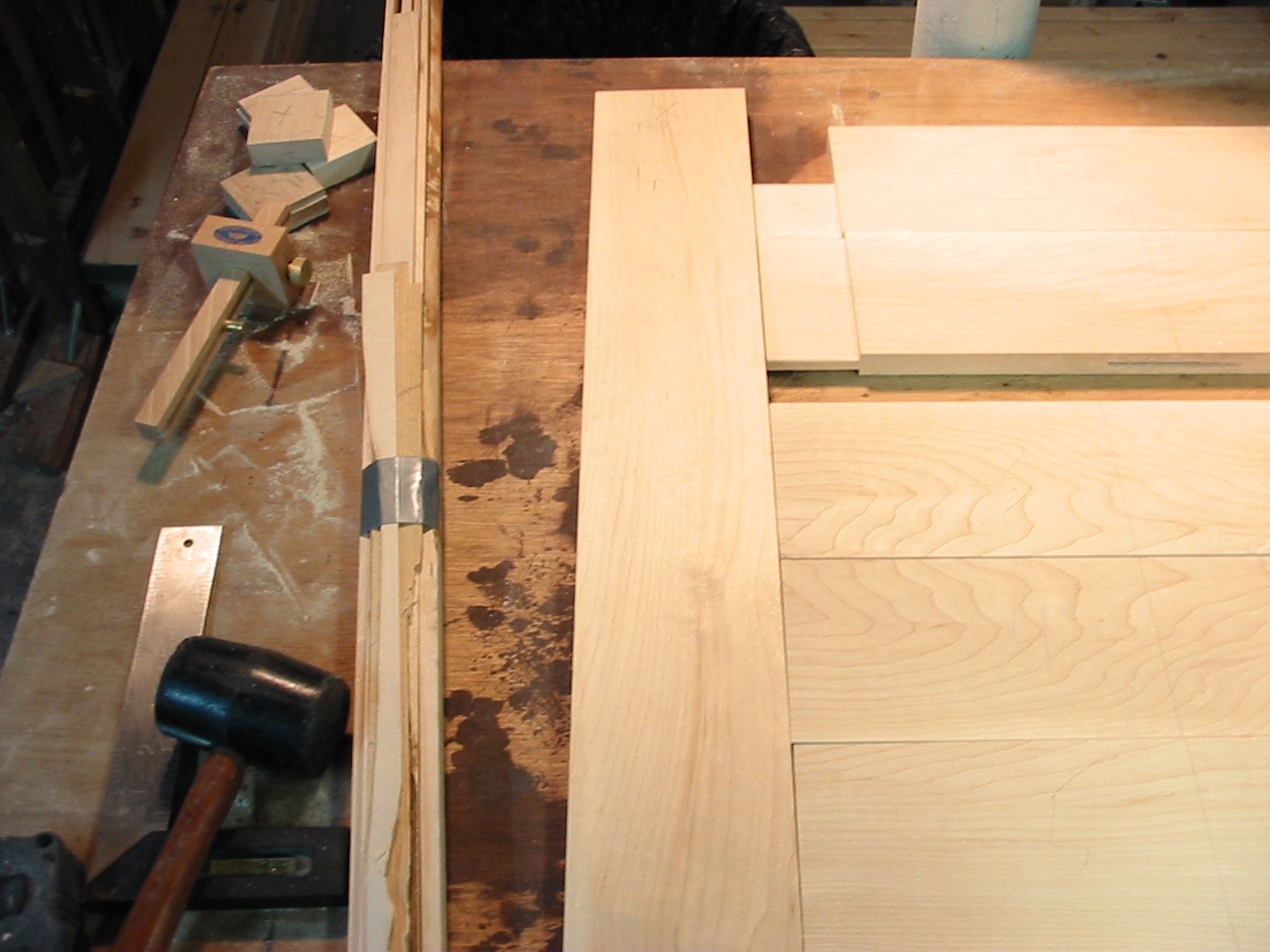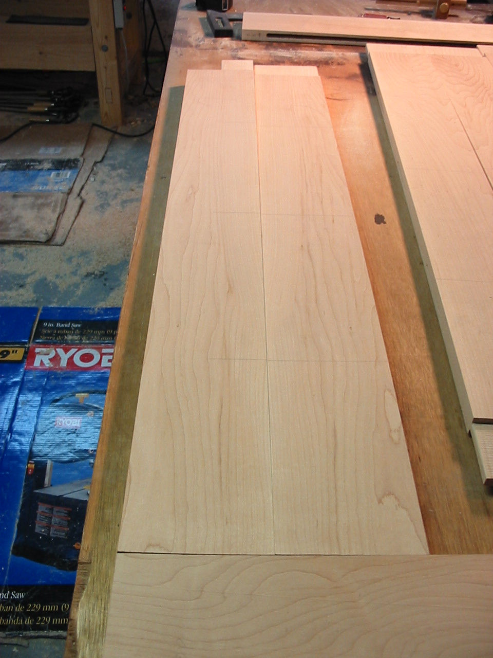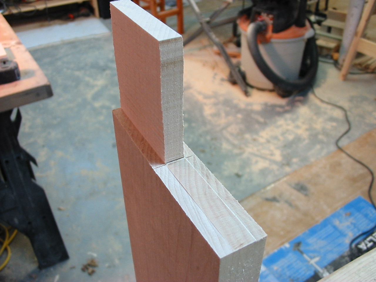 My FW 2008 One Board Furniture Build-off Part2 Well the cat is out of the bag! I am building a "Pub Table" from my hard maple stick! It is a type of 'occasional table' but mostly its a high-top table we plan to use in our kitchen! The first new joinery technique i am using is a breadboarding, and in this part i cut the table top and create the breadboard ends! It was fairly straightforward, and i began by making the cheek cuts on my table saw, then nibbling away the rest of the tenon. and finally using my files to clean up each tenon. The breadboard itself was bored out using my fancy new drill press! I hooked up a shop-vac to suck out the debris, but because the chips were so course they really got embedded in the slot. It took a lot of work to clean out the slot, and cleaning up the ridges with a file and chisel was actually easier! Finally i returned once again to my trusty file, this time to make sure at least one end of the top fit snuggly into the breadboard, the other will be cleaned up once the top is all glued together. The excess breadboard end will disappear! The next installment will be uploaded soon, it includes another new joinery technique which i have not used, and my first attempt working with hide glue! There were some problems! Hang in there....
