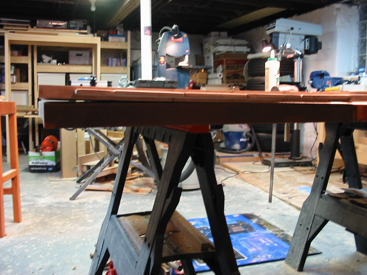Completion of the table top ends was both tedious and exhausting, one end of my boards were fairly square and required minimal filling to get the breadboard end to fit accurately. The other end was not so easy! I used my trusty "Handy File" and lots of elbow grease, and eventually got all the boards square and the ends fitting perfectly!