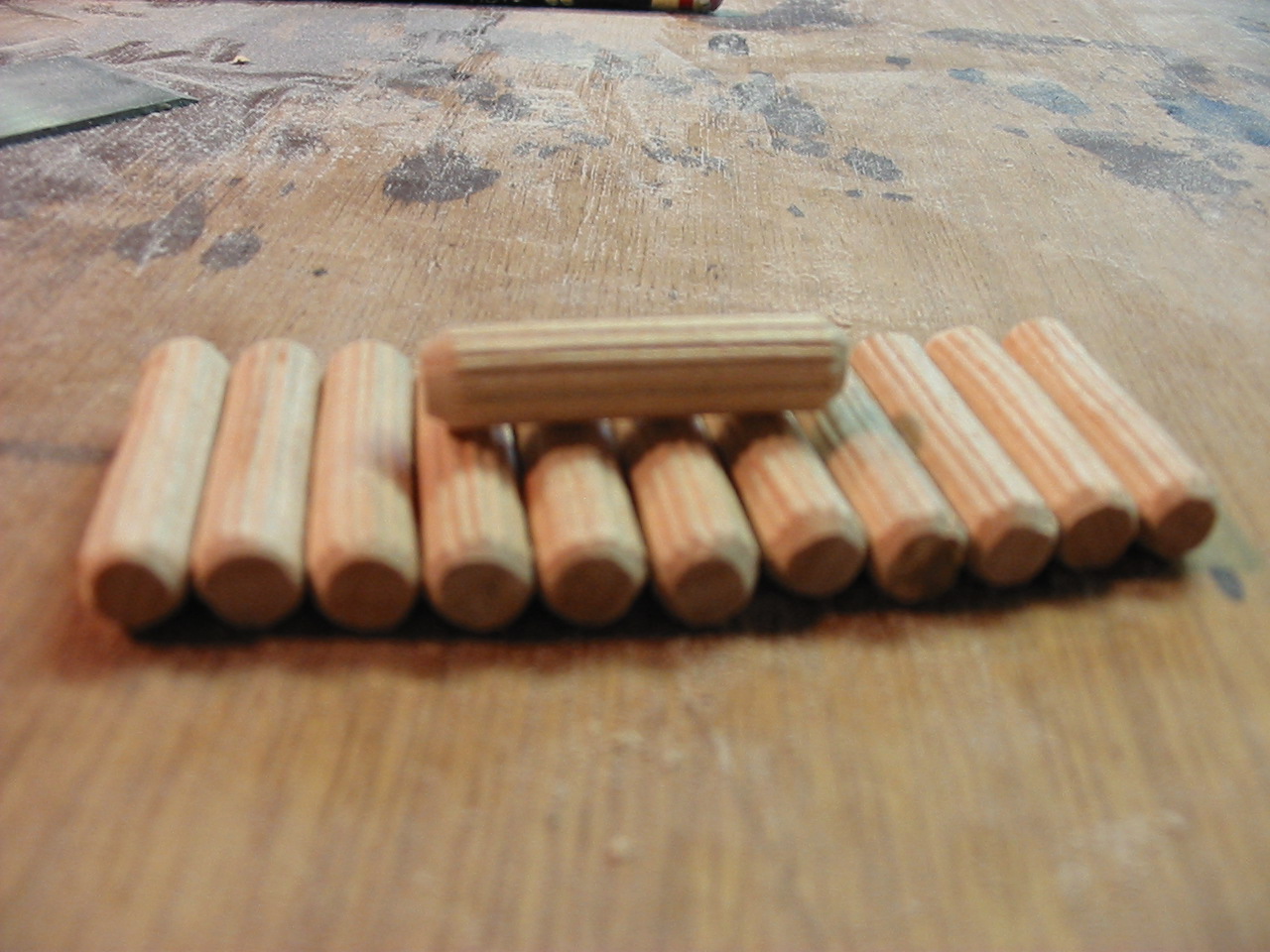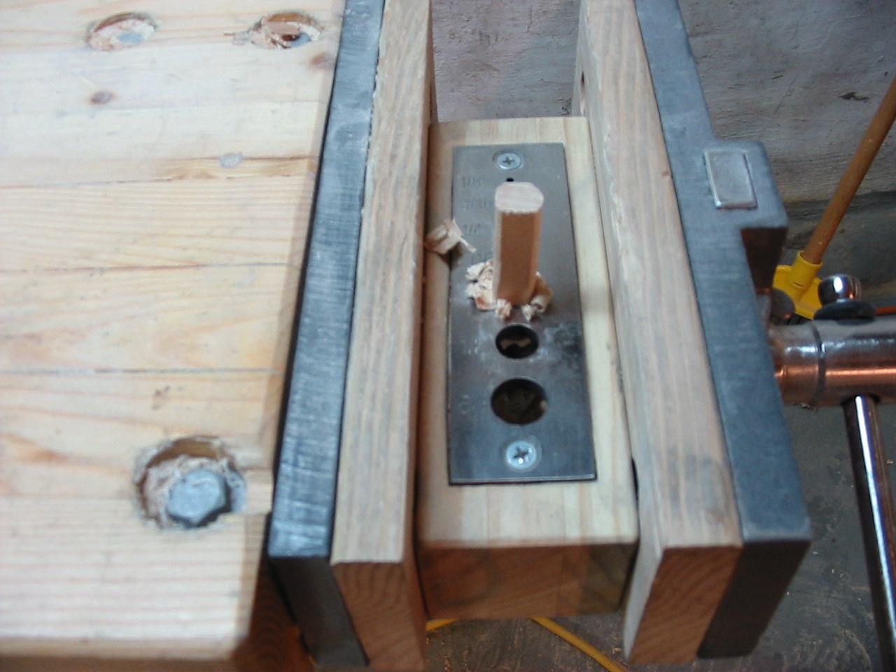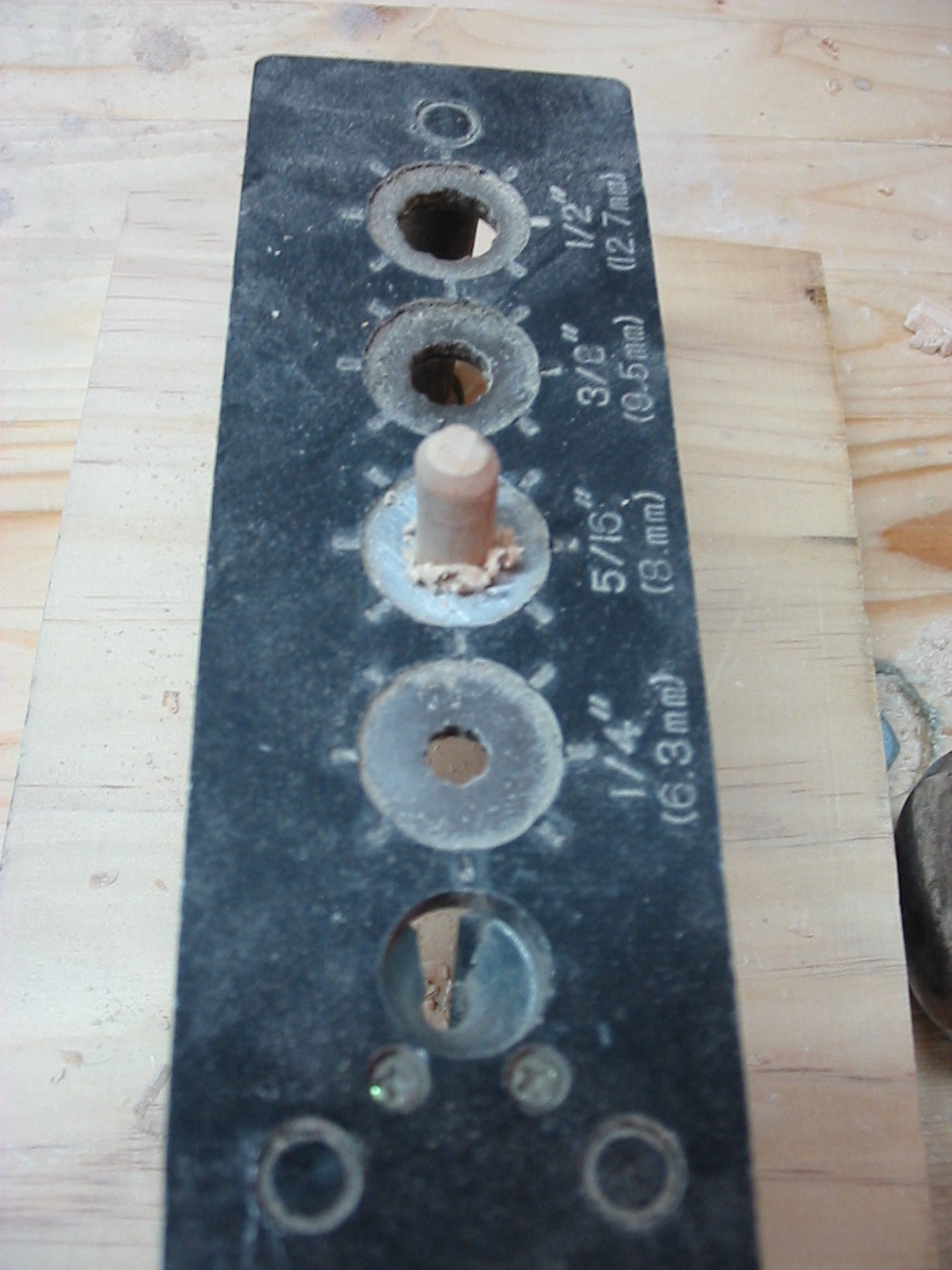 Creating dowels was a challenge, and they can be made a few different ways. I planned on using dowels early in my design and purchased a dowel plate and chamfer block from Hartville Tool, and i am very happy with the results. Pounding out the blanks was a little tough, but with a few tips from the recent Woodwright show i was able to create some very straight and useful dowel pins!