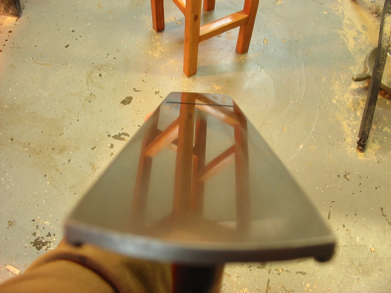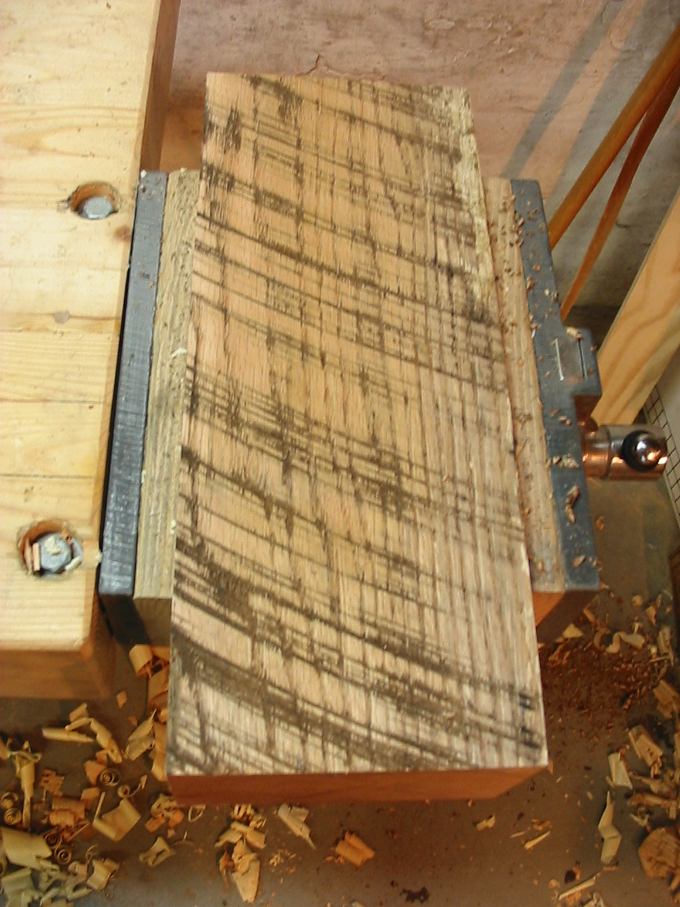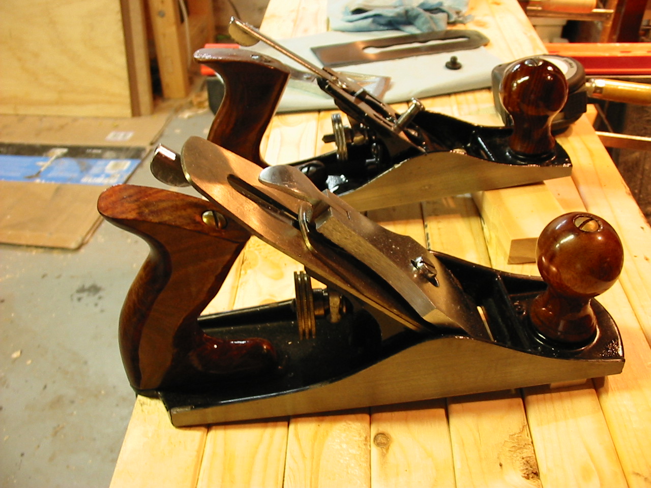 Hand Plane Tune-Up I now have a small collection of 4 planes, which consist of two bench planes one from China (Harbor Freight) and one from India(Hartville Tool). The block plane came from China (Home Depot) and without knowing the true origins of my 14" Jack Plane i will guess it was made in the USA. Now i have spent a considerable ammount (6-7 5hr days) of time working each of these tools on my sanding paper(3M & Norton), and float glass and have a few interesting things to report, namely WOW I HAD NO IDEA.... With just a little while (30min) on each 110 and 220 grit paper the difference in sole flatness is amazing! You will want to keep going, and will be amazed how far you can clean up all of these 'useless' tools making each sole nearly perfectly flat! The steel for the blades is an interesting topic, and clearly a properly honed Hock blade in the old 14" jack was the show stopper, yet the 'cheap' steel performed well, once honed! The China steel was the dirtiest, hardest, and stayed sharp long on my redwood test block. The India steel was clean and less difficult to draw across the sand paper, but didn't stay as sharp as long as the China steel. Of Note, the most untrue plane sole was the made in USA old 14" jack plane, with a couple casting blemishes, but these all disappeared in time, and there was only a small section of this sole that i didn't true, it can be seen in the first of those mirror images. So the lesson to be learned is this: You _can_ buy a cheap plane and make it work well, but ONLY if you invest the time in properly tuning the tool!
