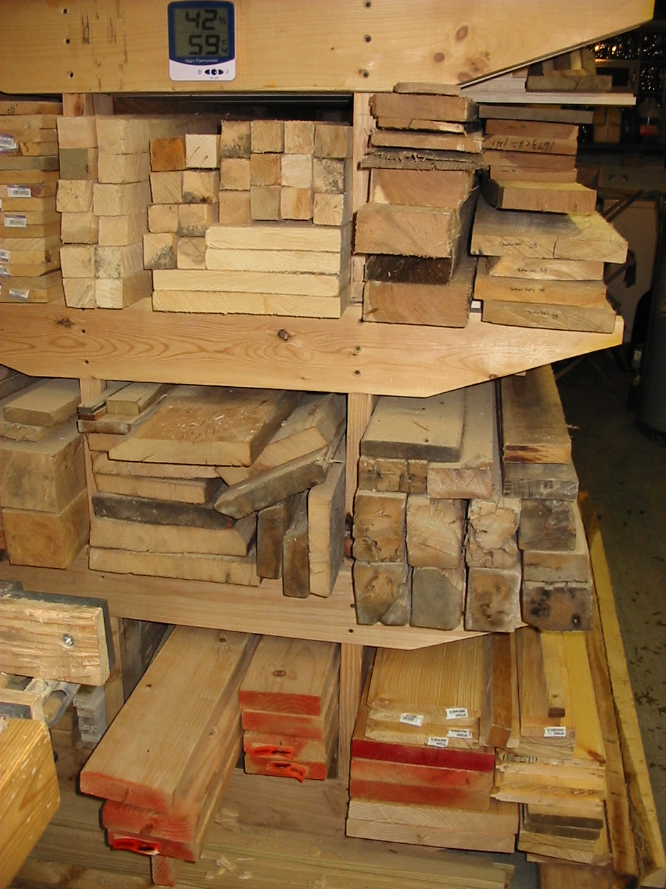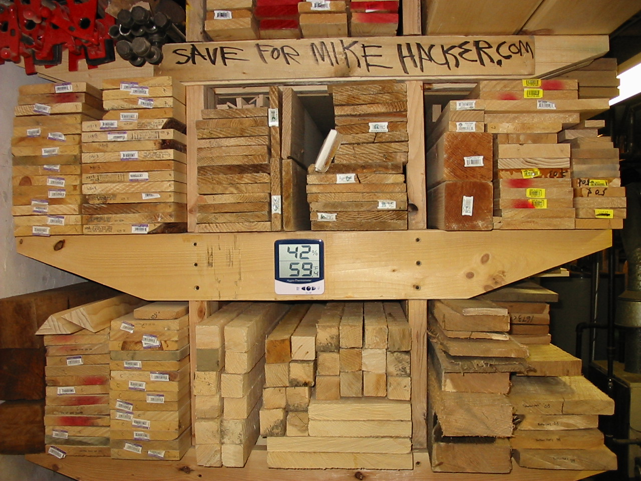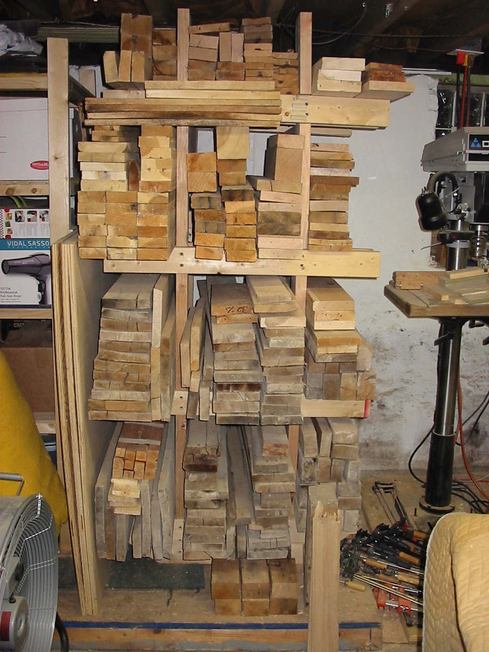 Lumber Rack Updates its been over a year since i packed out my rack, and i have been using much of the lumber i have been collecting. many of the air dried pieces are reaching acceptable moisture levels, and remaining straight and looking good! i recently took a trip to my Amish lumber friends and scrounged up some really awesome lumber. i have been itching to make a set of hollows and round moulding planes, and with the recent win of some cool tool steel, i need to get some lumber drying to make the plane bodies. originally i wanted to get some fruitwood, particularly apple wood to make my plane bodies. my reasons are simple, tools made from apple wood are often rare, extremely wear resistant, and living in New York we have an abundance of this beautiful wood. unfortunately my friend didn't have any apple wood at this time, he's looking for next year! i did happen to find some very amazing Hickory with very straight grain and great color. it was downed in Feb. of 2008 and will sit for another nine or so months until it will be ready to begin the plane making process. i also got some great Ash for the faces of my planes, because it offers great contrasting color, and superior wear characteristics. the rack has really packed itself out, and is working very well for my needs. its about all the lumber i can justify without being called crazy! i also trew together a pallet smashing hammer! its a 3lb head on an old hickory axe handle and is surprisingly well balanced. its perfectly light for one handed use, and powerful enough to break pesky pallet joinery. its a great homemade tool!